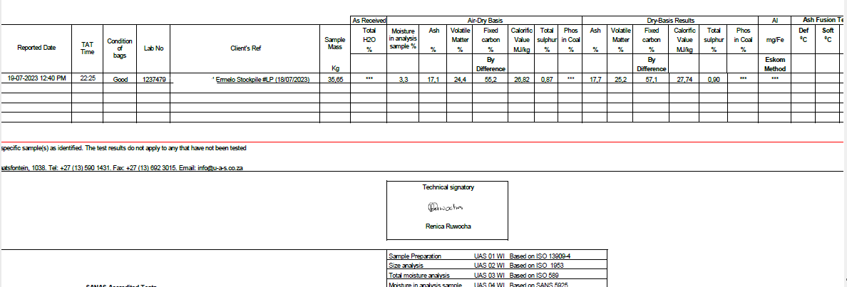 Anthracite ROM (Lower seam roof). 20,000 on floor Ermelo • Specs: Inherit moisture: 2.0% >Ash content: 35,6% >Volatile Matter: 7,1% >Fixed Carbon: 55,3% >Calorific Value: 19,65% >Total Sulphur: 0,91% R1000 Negotiable with direct buyer Old report available, test yourself. POF, Test, Pay and Load NOTE: Only lab technician allowed to sample (verified), buyer can come along (no brokers or mandates) ================================== DIRECT BUYER ONLY (NO MANDATES, NO BROKERS) www.transmatta.com www.commoditymarket.co.za Vally: 076 467 44832023-09-18 23:49:04 |