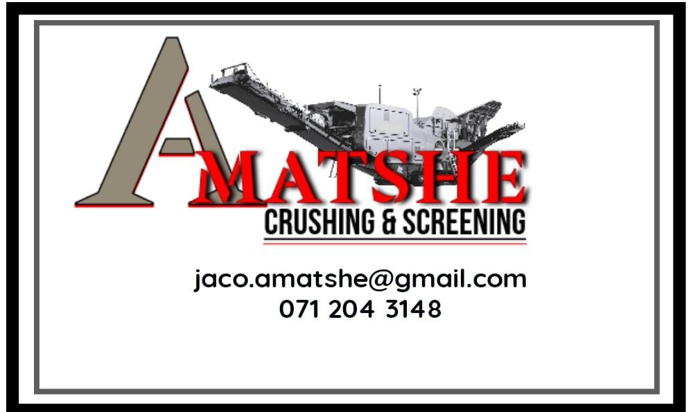 Amatshe Crushing and Screening Services Mobile crushing and screening at your site We come to you, crush and screen to your specs. Various machinery for crushing and screens for your specs Vally: 076 467 44832023-08-17 16:33:50 |